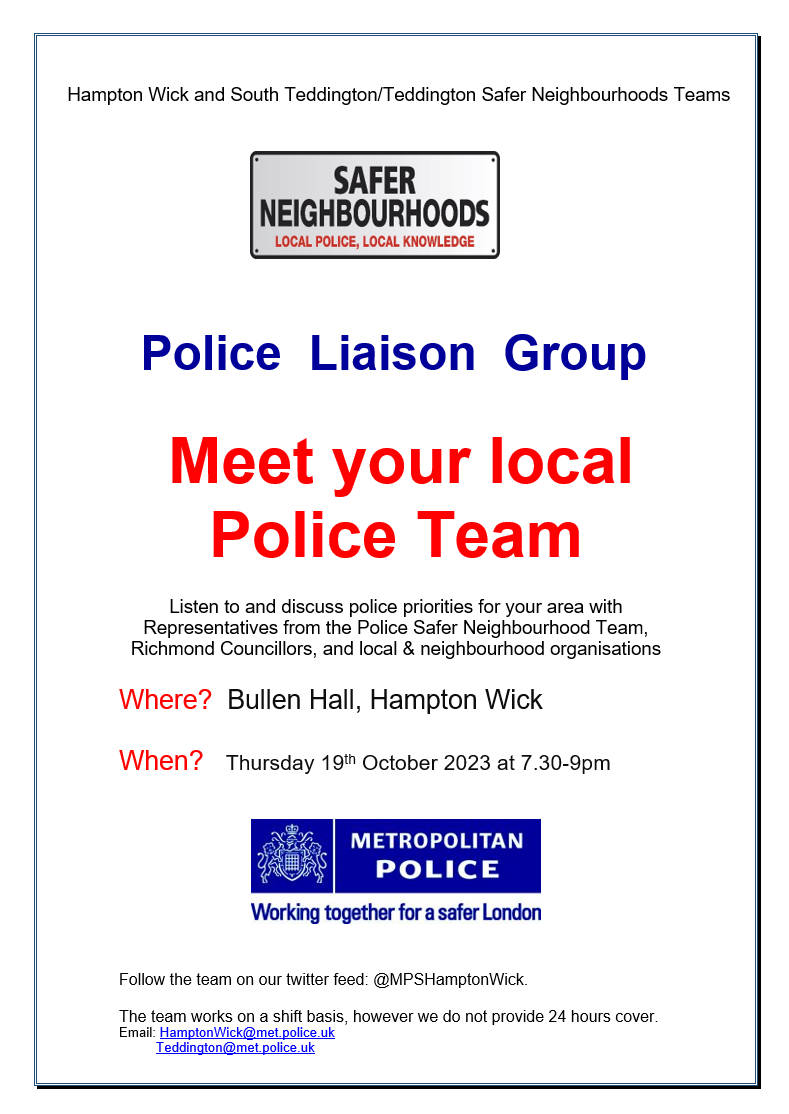 Hampton Wick and South Teddington Wards Police Liaison Group meeting.