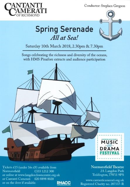 Cantanti Camerati will be performing at 2 concerts on Saturday, 10 March. Songs will be celebrating the richness and diversity of the oceans, with HMS Pinafore extracts and audience participation.