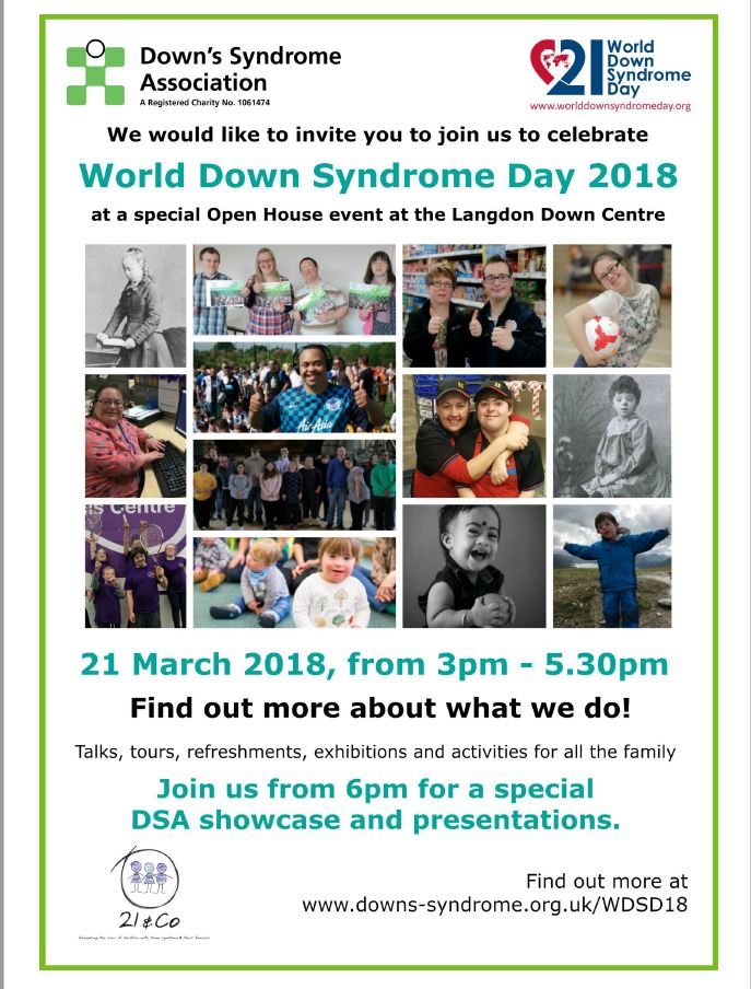 We’ll also be hosting a special Open House event at our National Offices at the Langdon Down Centre from 3pm to 5.30pm. Join us from 6pm for a special DSA showcase and presentations.